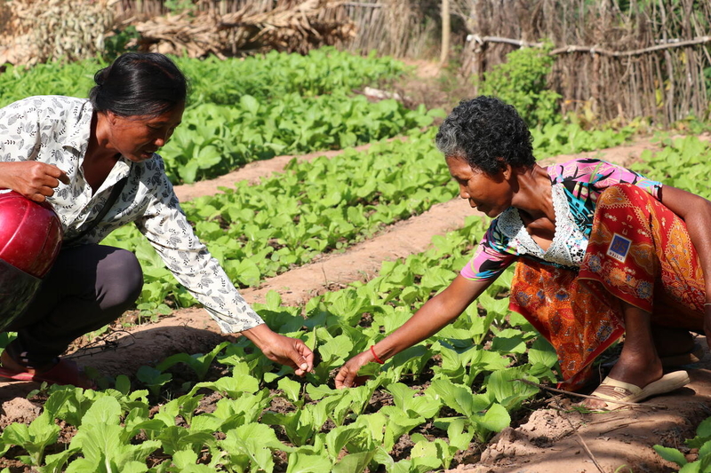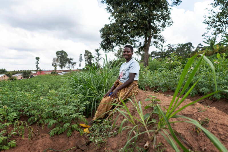 | Delphine in her potato fields in Rwanda – WFP has supported and trained her on climate-resilient farming techniques such as land terraces. Photo: WFP/Arete/Fredrik Lerneryd | Smallholder farmers picking vegetables in Cambodia. Photo: WFP/Ratanak Leng | Sand dune fixing project in Faux Cap, Madagascar. Photo: WFP/AliceRahmoun |
